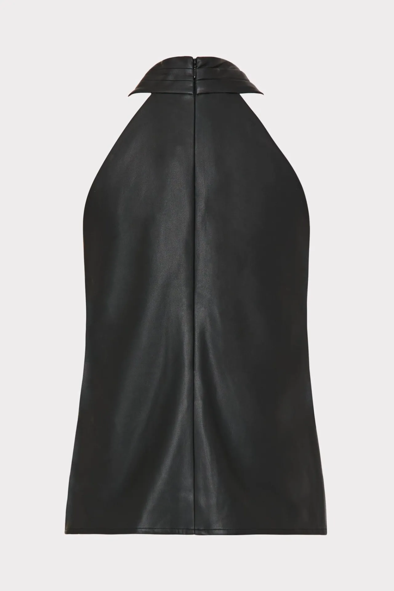This Sleek High-Neck Halter Top Comes With A Little Bit Of Stretch, Cut-Outs On The Side And Zips Up The Back. Tuck It Into One Of Our Coordinating Vegan Leather Pants Or The Rayla Vegan Leather Pleated Skirt.