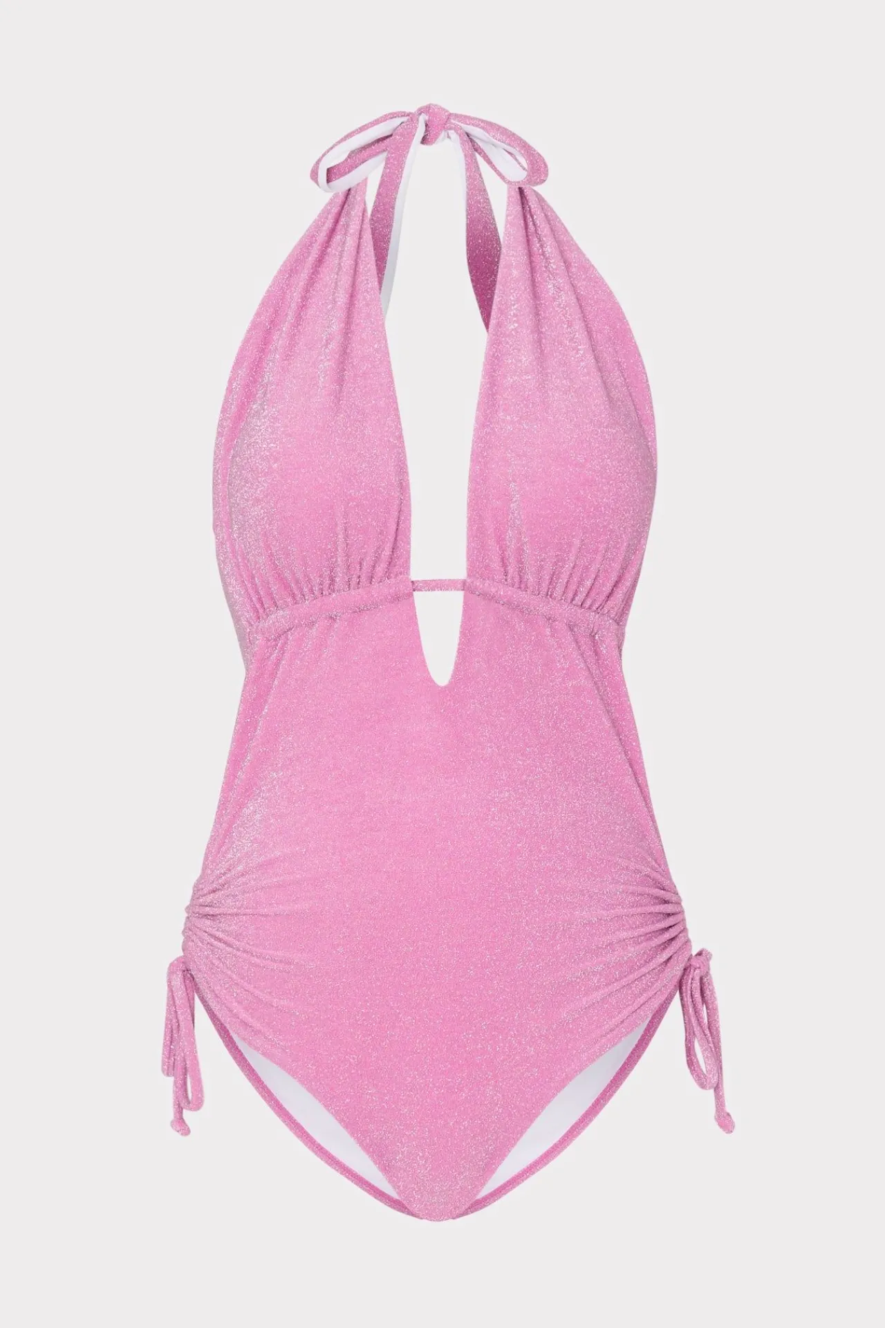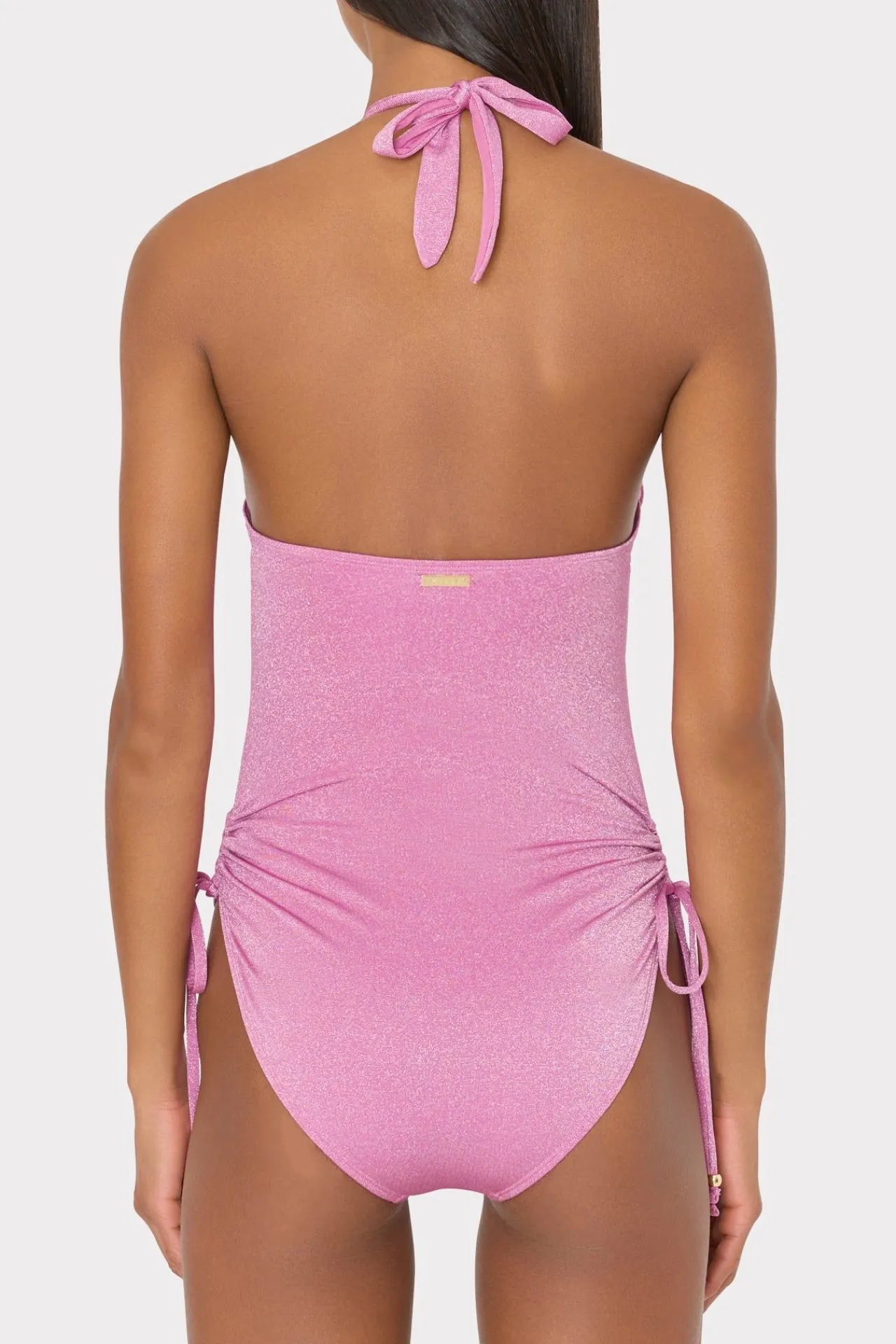 Made From Luxe, Sustainable Italian Swim Fabric With A Hint Of Shimmer, This Minimally Sleek One-Piece Has A Plunging Halter Neckline Featuring A Keyhole Detail At The Center. There’S Also A Flattering Ruching Detail With Ties At The Hip. Style Your Suit With Your Favorite Milly Coverup And A Pair Of Dark Shades.