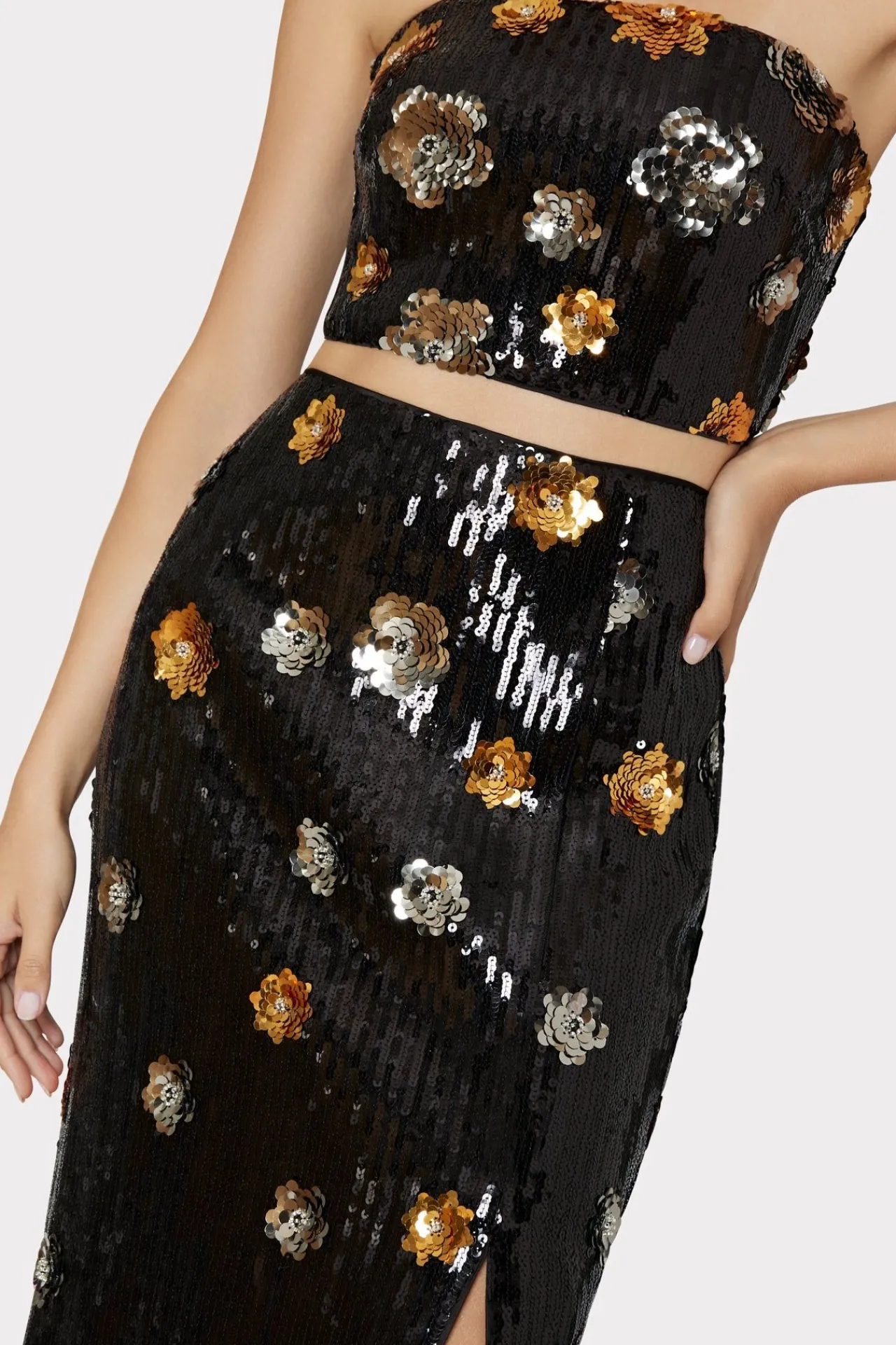 For The Holiday Season, An Updated Version Of Our Signature 3D Floral Sequins Are Back On A New Silhouette. This Strapless Crop Top Style Is Cut From An All-Over Sequin Fabric That’S Adorned With A Cascade Of Multicolored Sequin Floral Detail. For The Full Look, Wear It With Our 3D Floral Sequins Skirt.