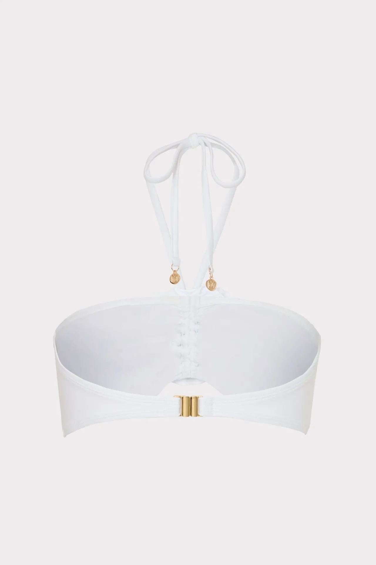 This Halterneck Bikini Top Is Accented With A Feminine Floral Appliqué Detail And Adjustable Ruching Detail That Cinches At Its Center. It Features Boning At Each Side For An Enhanced, Structural Fit And Is Finished With A Clasp Closure In The Back.