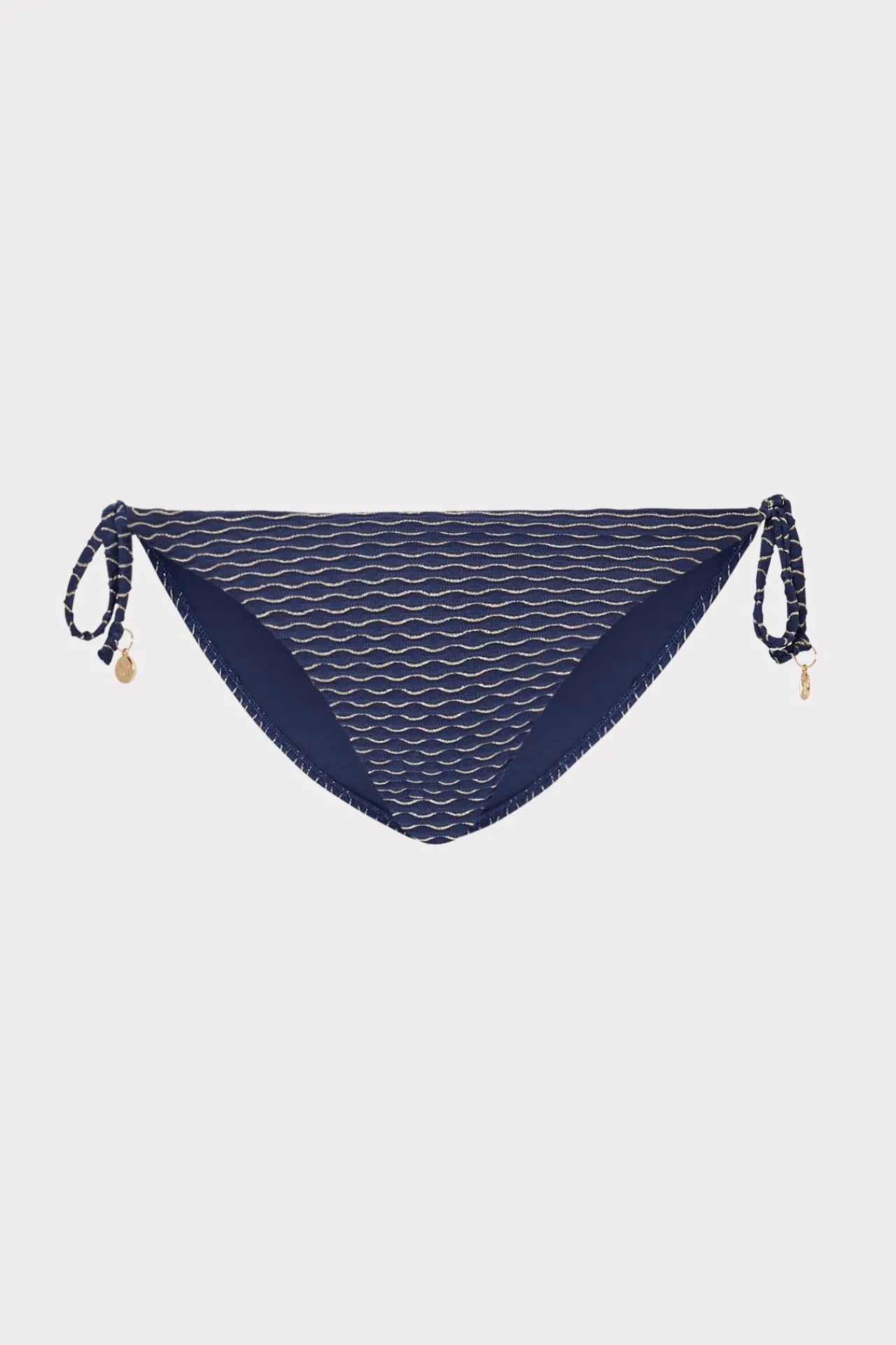 This Classic String Bikini Bottom Is Done In Our New-For-The-Season Textured, Gathered Wave Fabric With Gold Lurex Detail. It Provides Medium Coverage And Ties At Both Sides. Wear It With Its Coordinating Bandeau Or Triangle Top.