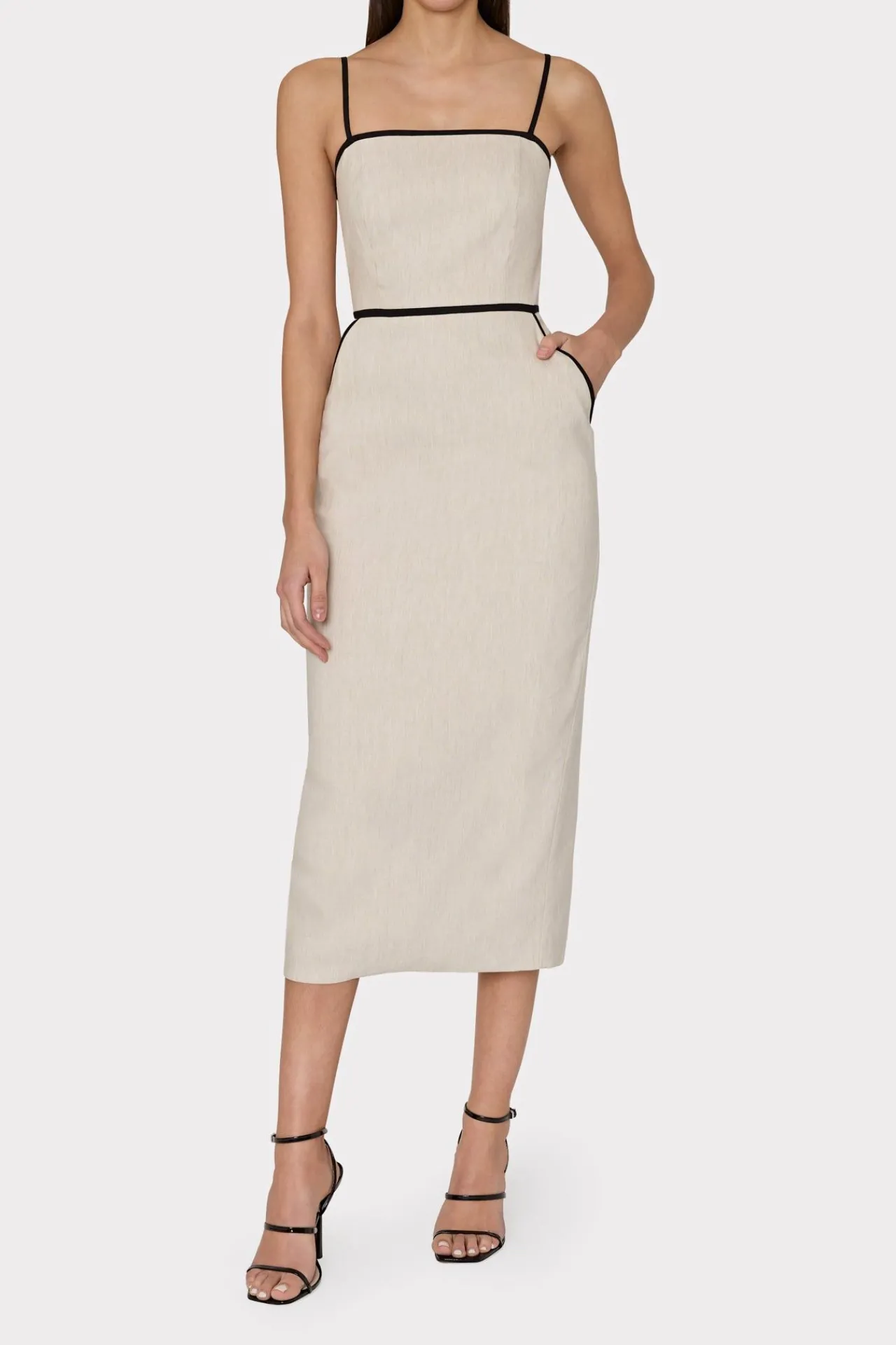 MILLY Cocktail Dresses-Amara Linen Contrast Midi Dress