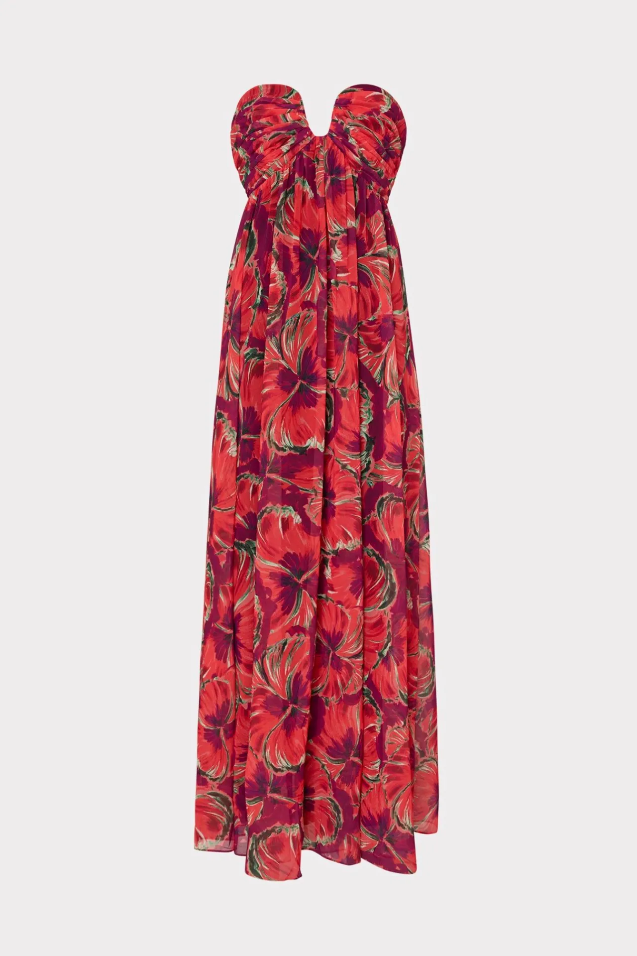Rendered From A Luxurious, Pleated Chiffon Floral Fabric, This Fluid Maxi Dress Style Features A Wired Strapless Neckline. Wear Yours To All Of Your Upcoming Spring Soireés.