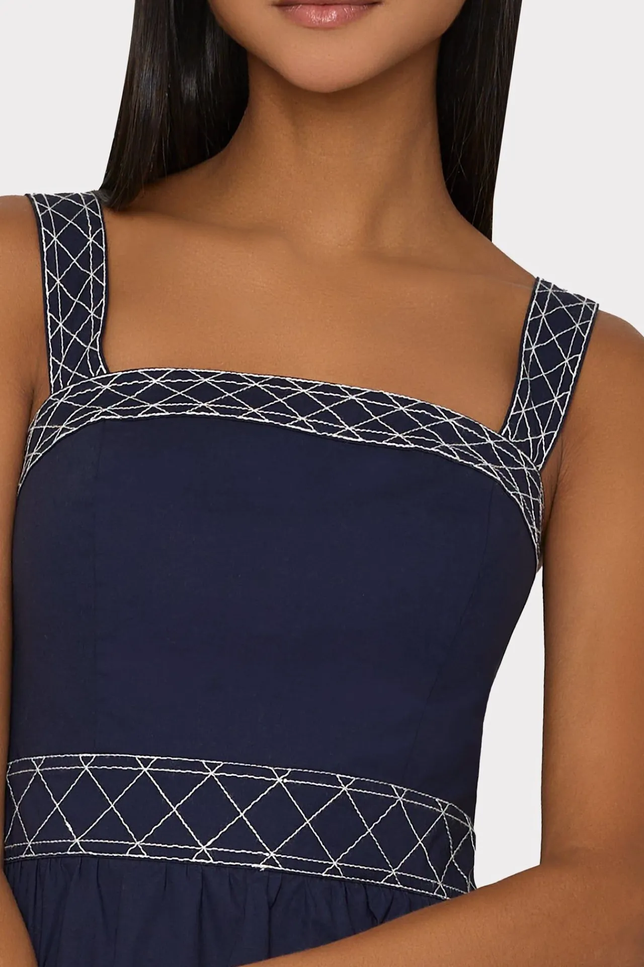 Rendered From Lightweight Cotton Poplin With A Bit Of Stretch, This Style Features Embroidery That Separate Each Of The Dresses Tiers And Along The Neckline. Style Yours With Flat Sandals And A Basket During The Day Or With An Ankle Strap Heel At Night.