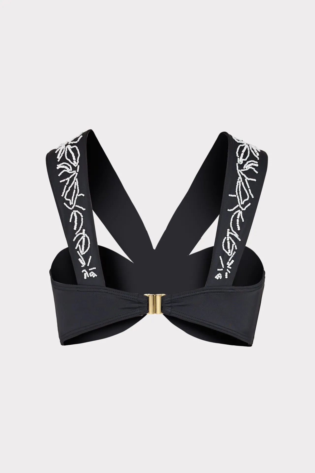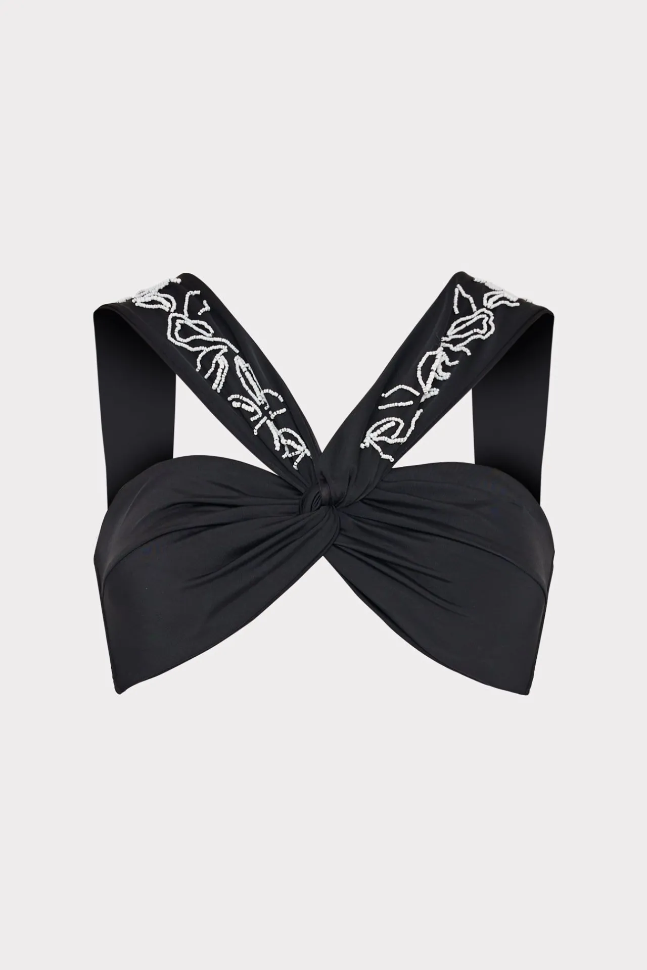 MILLY Jumpsuits & Rompers-Beaded Applique Shoulder Draped Bikini Top