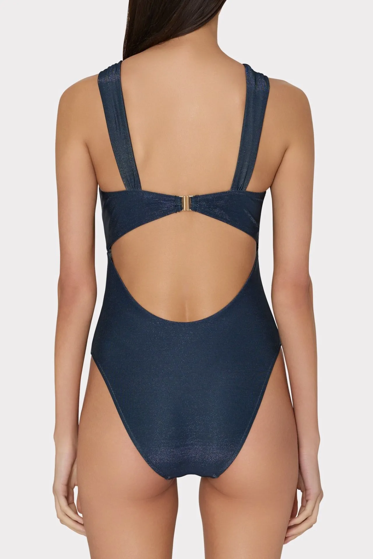 Made From Luxe Sustainable Italian Swim Fabric With Shimmer Detail, This Timeless One-Piece Has Moveable Straps That Can Be Worn Off-The-Shoulder Or Twisted Across The Chest. It Has Removable Cups, A Skin-Baring Open Back, And Clasps In The Back To Close.
