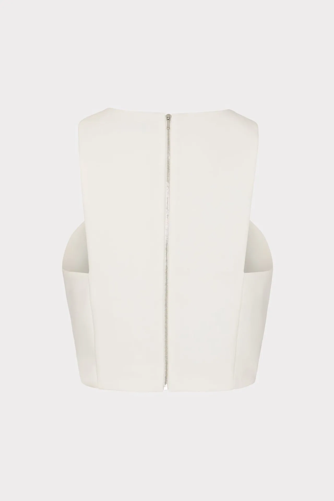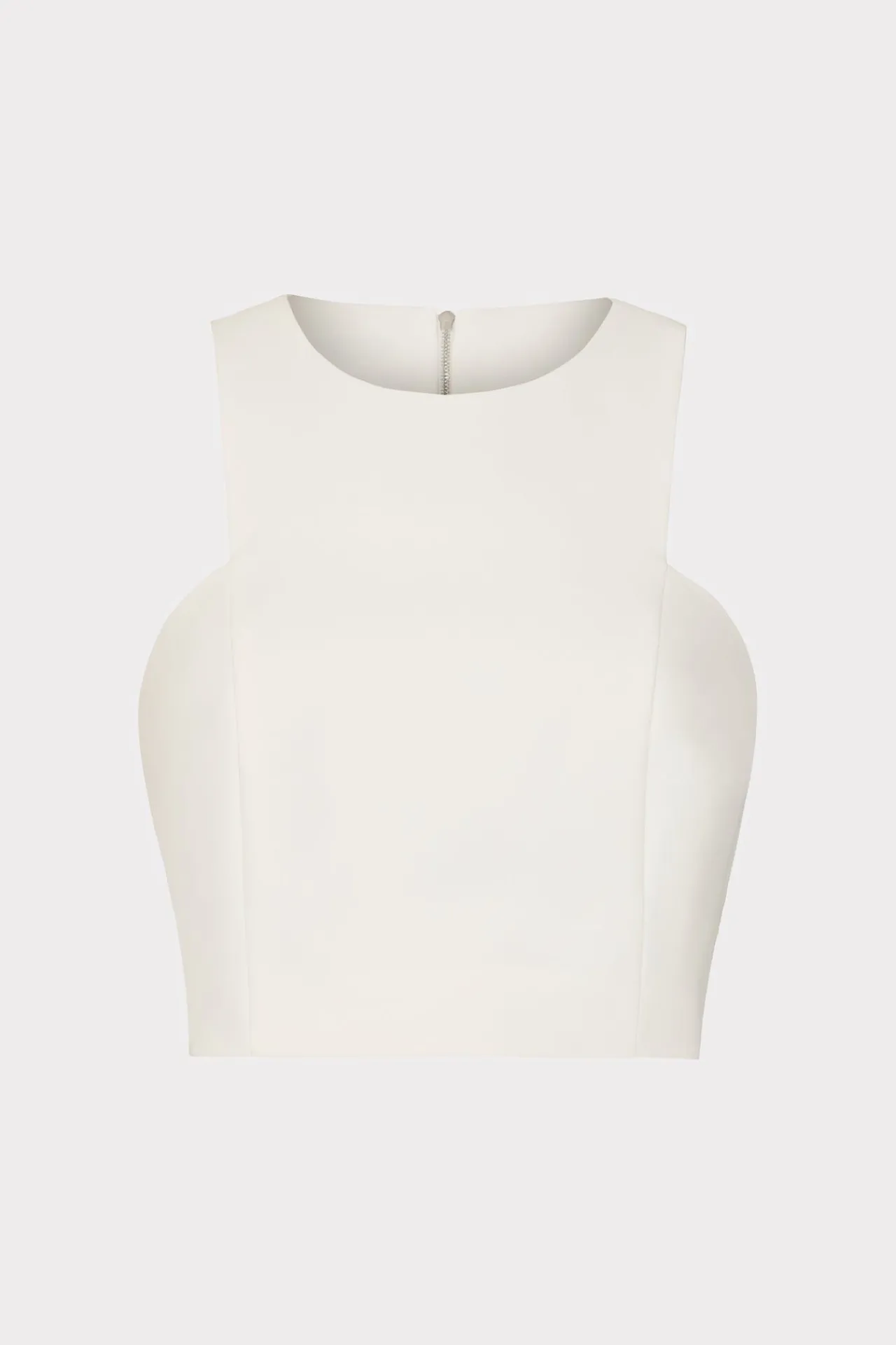 Cut From Our Luxe Cady Fabric, Our Sleeveless Crop Tank Features A High Neckline With A Unique Cutaway On Both Sides. It’S Finished With An Exposed Back Zipper. Wear Yours Under Our Avery Blazer Or Alone With Our April Short.