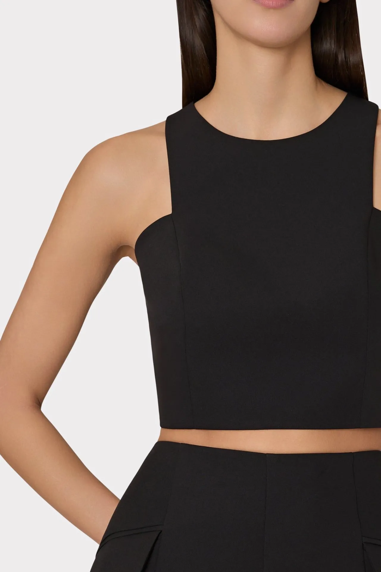 Cut From Our Luxe Cady Fabric, Our Sleeveless Crop Tank Features A High Neckline With A Unique Cutaway On Both Sides. It…