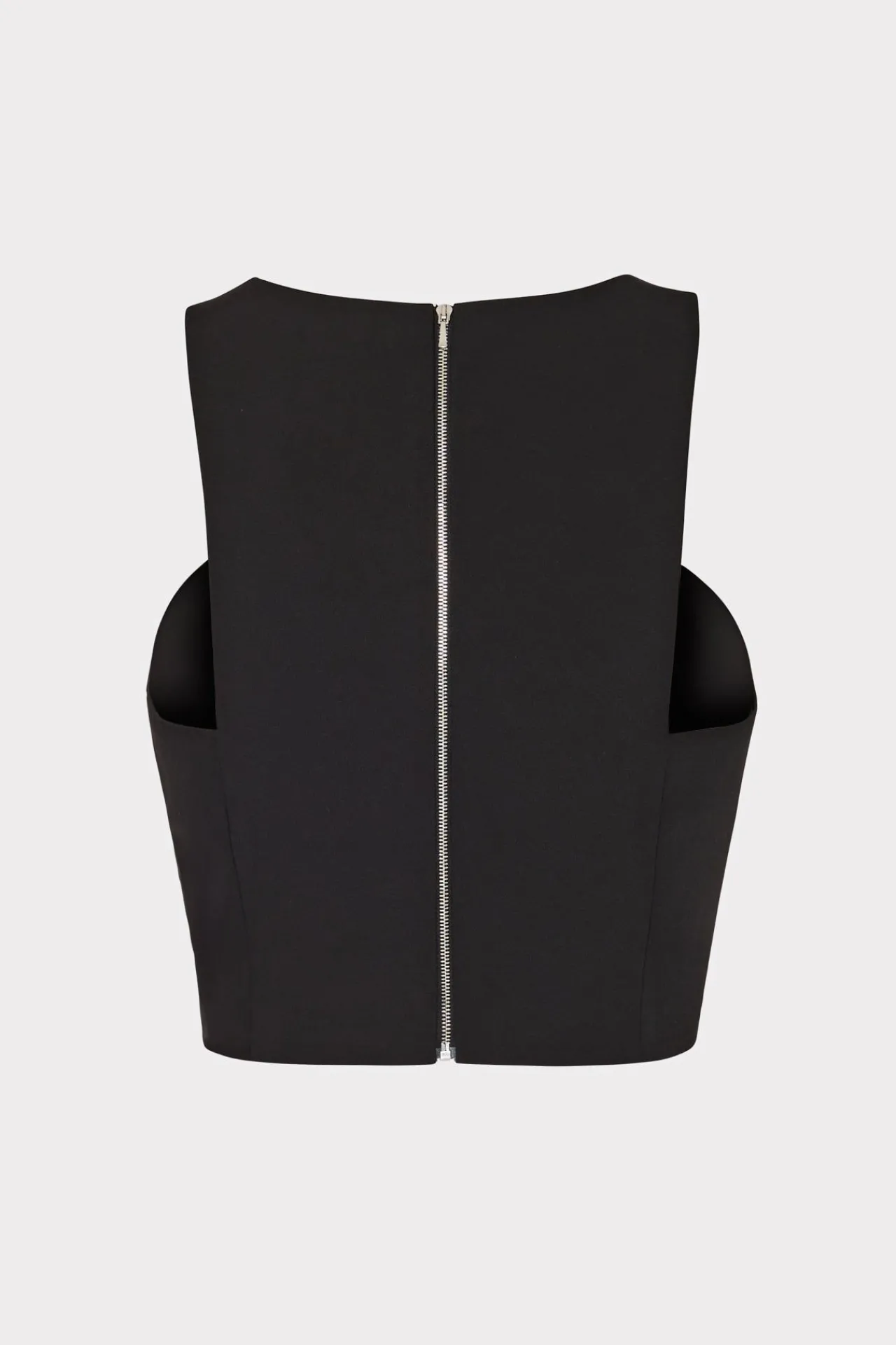 Cut From Our Luxe Cady Fabric, Our Sleeveless Crop Tank Features A High Neckline With A Unique Cutaway On Both Sides. It’S Finished With An Exposed Back Zipper. Wear Yours Under Our Avery Blazer Or Alone With Our April Short.