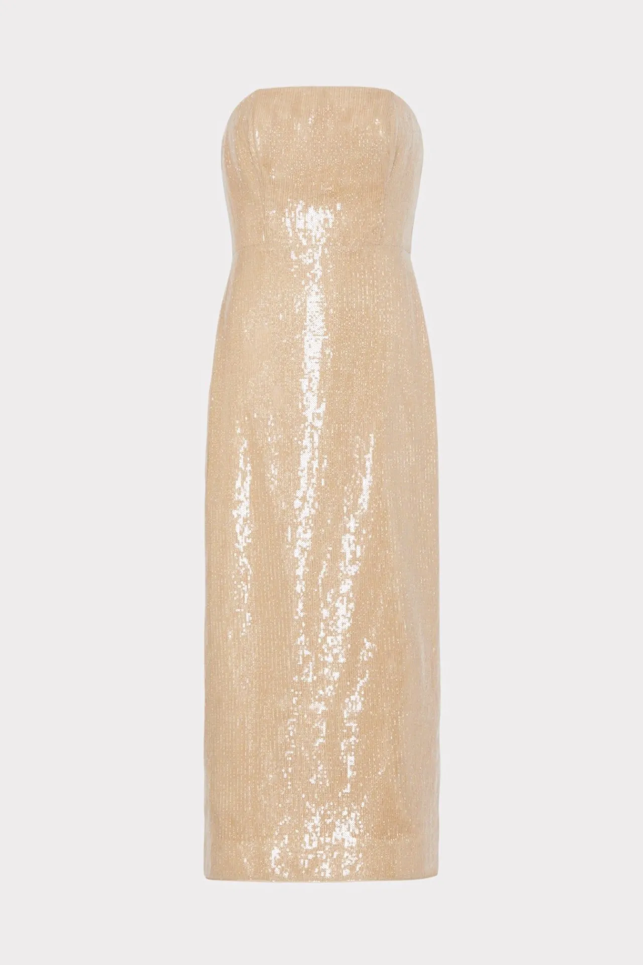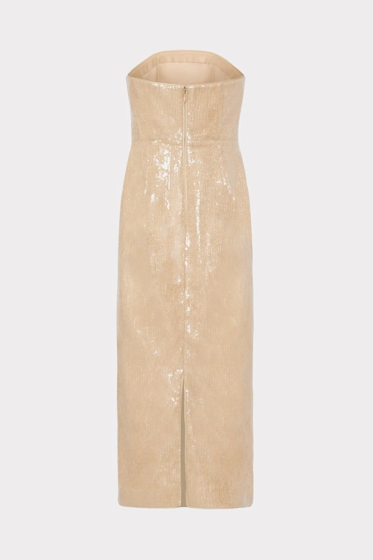 For Your Next Exclusive Party, Bring The Glamour With Our Strapless Kait Dress. This Ankle-Length Dress Features A Smattering Of Gold Sequins Throughout. It Zips Up The Back And Is Finished With A Flattering Back Slit.