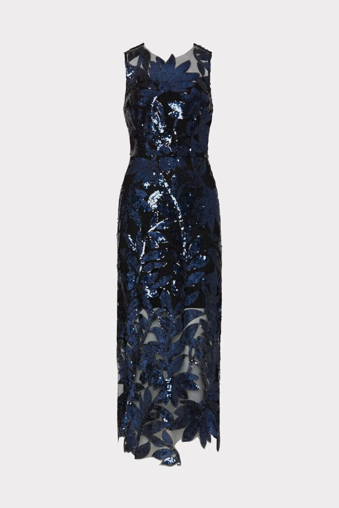 A Florals Sequin Lace Design Is Embroidered Throughout This Elegant Sleeveless Midi Length Dress With A Modest Neckline—A Standout Piece In The Pre-Fall Collection. Every Time You Wear It You’Ll Feel Special, Without Sacrificing Comfort.