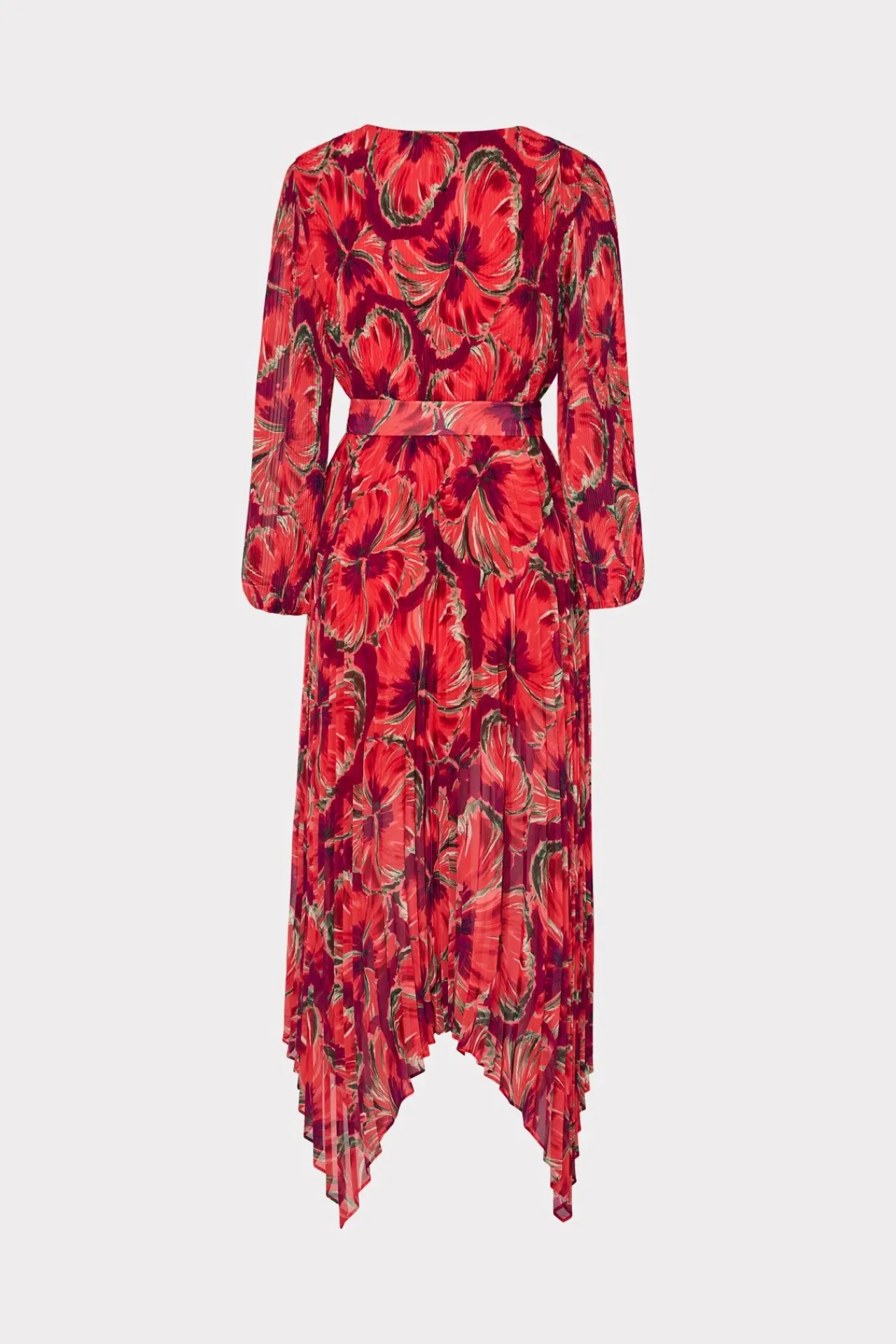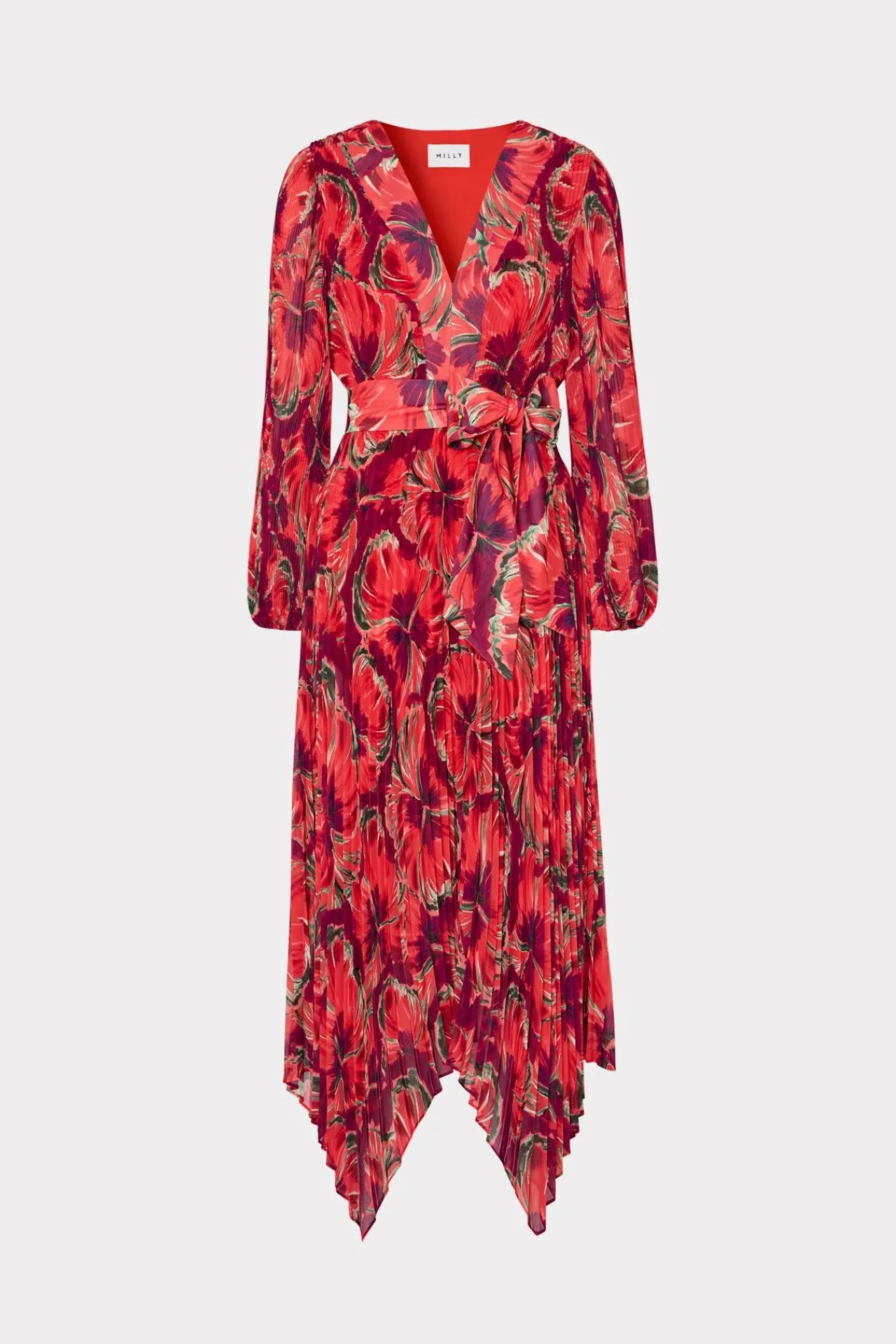 The Liora Is An Easy-To-Wear Silhouette That Features A Slim, Long Sleeve, A V-Neckline, A Milly Signature Pleated Skirt, And A Tie At The Waist For Added Shape. It Has An Uneven Hemline That Perfectly Drapes To A Midi Length. This Season, It’S Offered In Our New Windmill Floral Print.