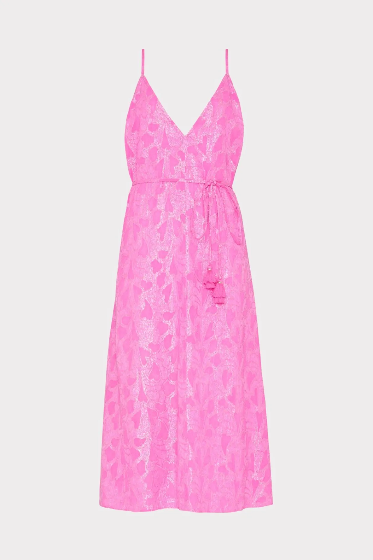 Cut From A Luxe, Lurex Jacquard Fabric This Midi-Length Cover-Up Dress Will Become Your Swimwear’S Best Companion. It Has Adjustable Straps, Fringe Detail, And The Option To Tie At The Waist For Definition (When You Feel Like You Need It). It’S Made To Be Worn Over Any Of Our Milly Cabana Swimsuits.