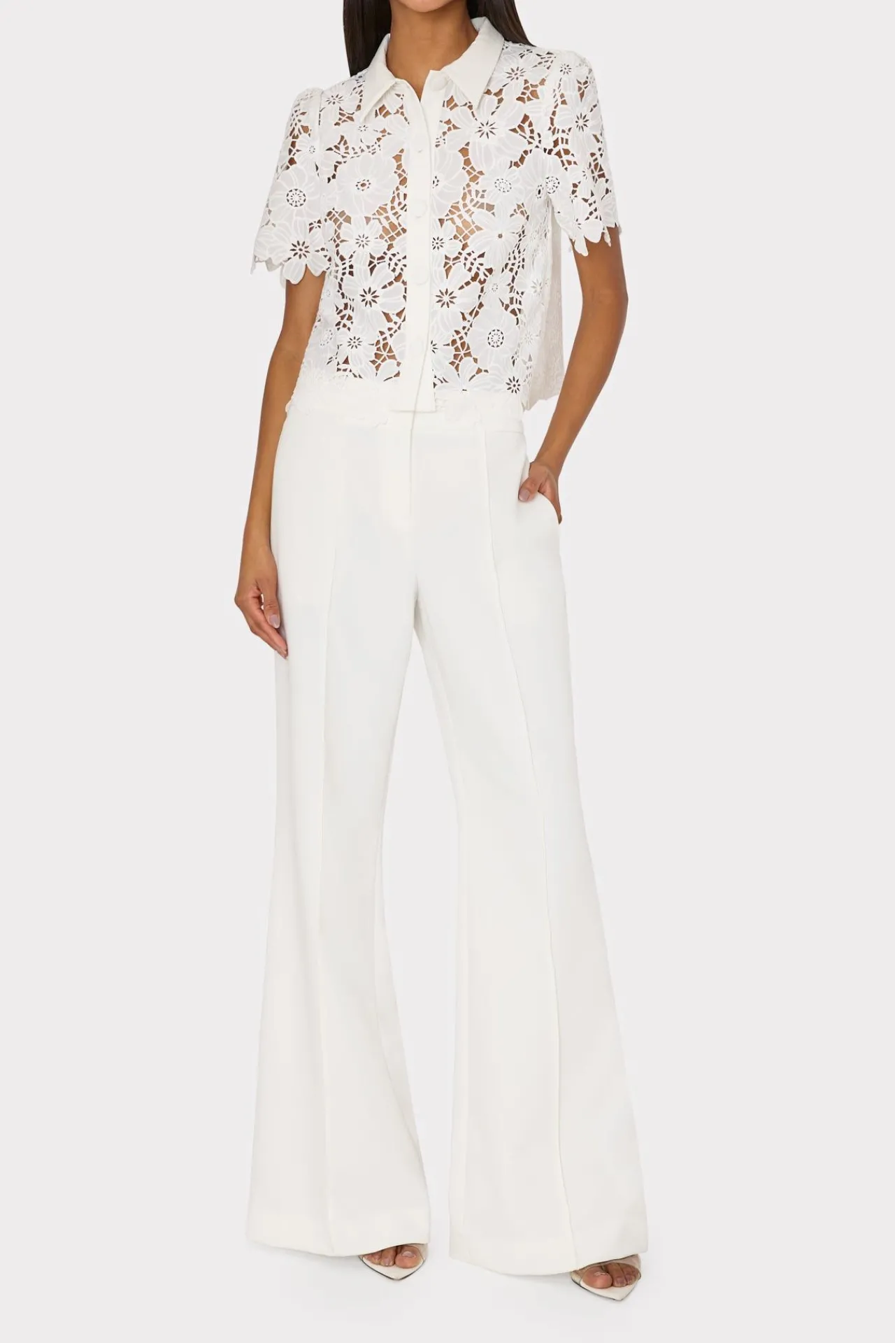 So Flattering And Versatile, This Dramatic Wide-Leg, Slightly Stretchy, Pant Is Sure To Get Repeat Wears All Season. Pair It With Our Avery Blazer To Create A Suit Or Wear Them Out At Night With Our Coordinating Crop Tops. It Comes In Essential Ecru For Spring.