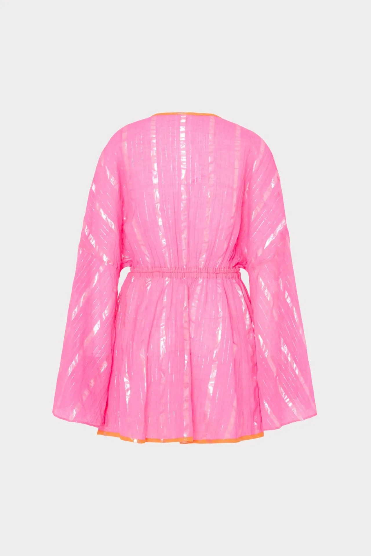 Cut From A Lightweight Cotton With Lurex Vertical Stripe Detail Throughout, This Deep V-Neck Coverup Dress Is Perfect For The Most Glamorous Of Beach Destinations. It Features Airy, Long Sleeves And An Adjustable Tie At The Waist That’S Finished With A Tassel Detail. Choose Your Best Color And Wear It Over Your Favorite Milly Swimwear.