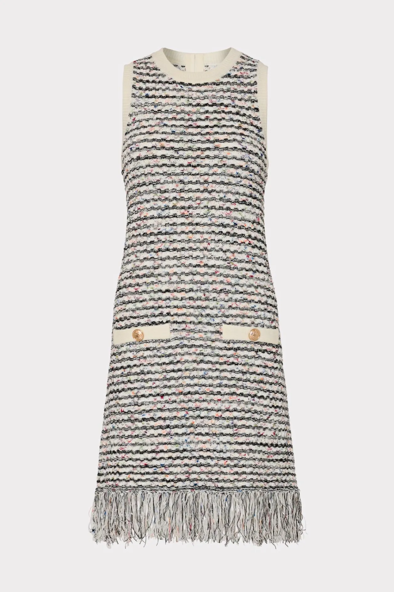 The Perfect Combination Of Modern And Classic, Our Mini Sweater Dress Is Knit With Multicolor Yarn And Adorned With Traditional Gold Buttons. For A Fun Milly Update, The Skirt’S Hemline Is Trimmed With Fringe.