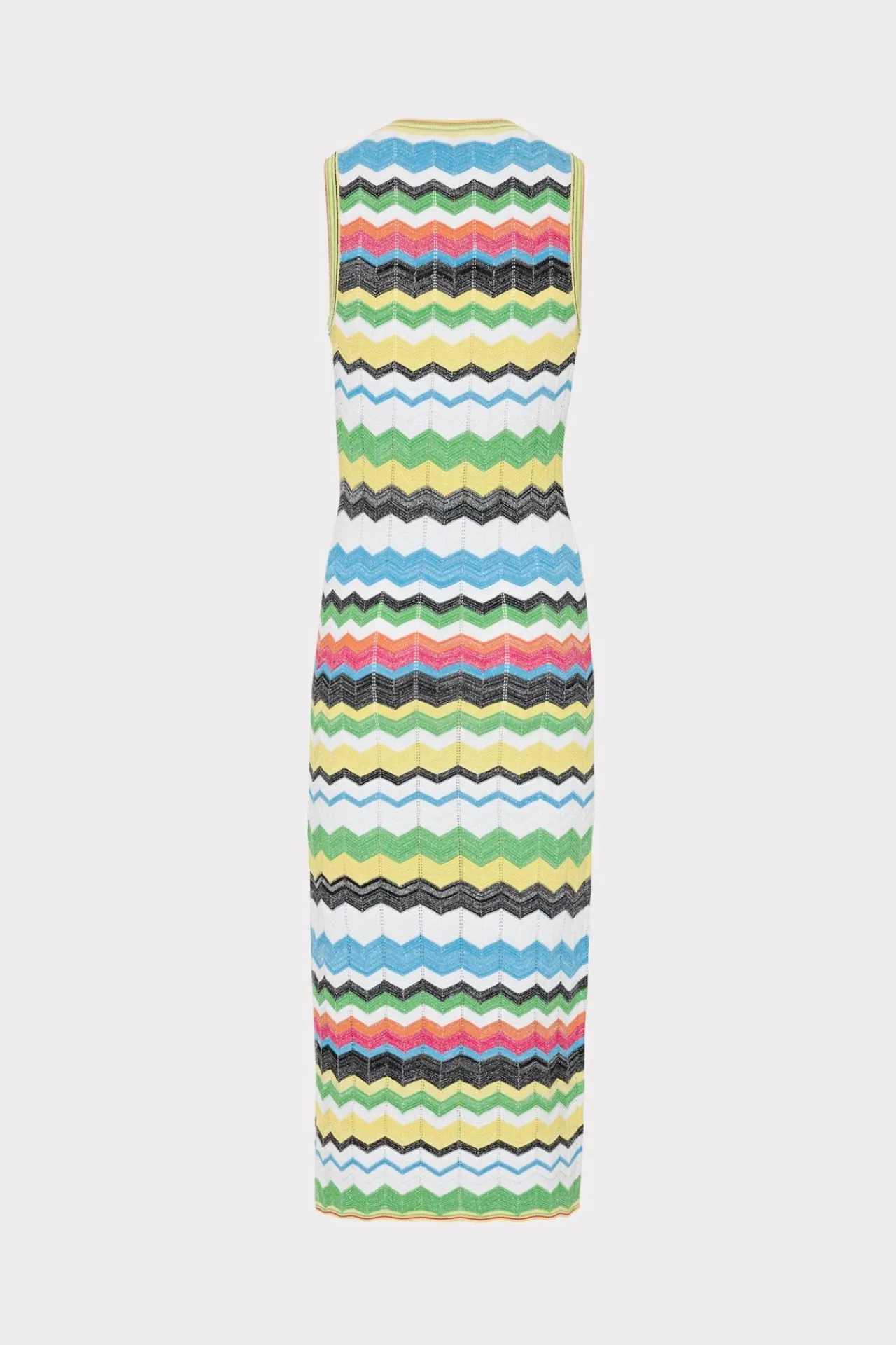 Every Season, Milly Offers An Updated Take On Our Iconic Luxe Knits. For Spring, Our Zig Zag Chevron Knit Fabric Comes In Multicolored Stripes With Metallic Detail Throughout. It’S Cut To Fit Close To The Body, Has A V-Neckline With Trim And Flattering Side Slits For Ease Of Movement. Wear It With Flat Slides During The Day Or Dress It Up With Heels.