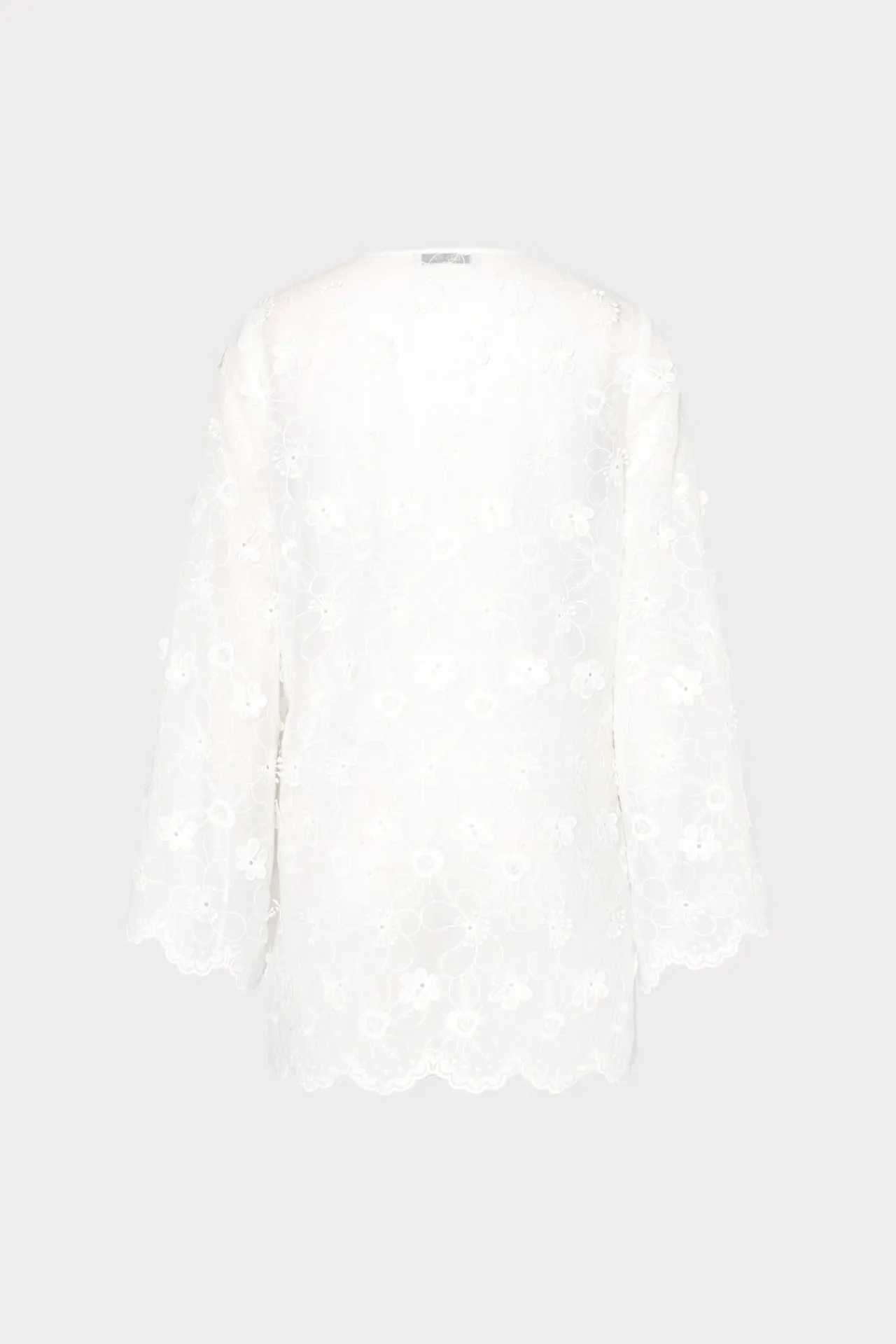 Cut From Our Sheer, Embroidered 3D Floral Fabric, This Tunic-Style Coverup Can Be Seamlessly Matched With Any Swimwear Of Your Choosing. It Features A Long, Relaxed Sleeved, A Scalloped Hemline, And Deep Neckline That’S Finished With A Tie Closure. Wear It With A Pair Of White Slides On Your Next Trip.
