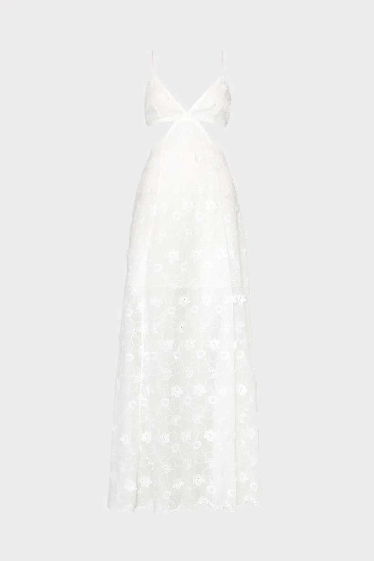 Cut From Our Semi-Sheer, Embroidered 3D Floral Fabric, This Maxi Swim Coverup Is Pure Elegance. It Features Side And Back Cutouts For Steamy Days, Has A Feminine, Scalloped Hemline, Is Partially Lined, And Clasps In The Back To Close. Wear It Over Your Favorite Milly Swimwear For An Elevated Resort Look.