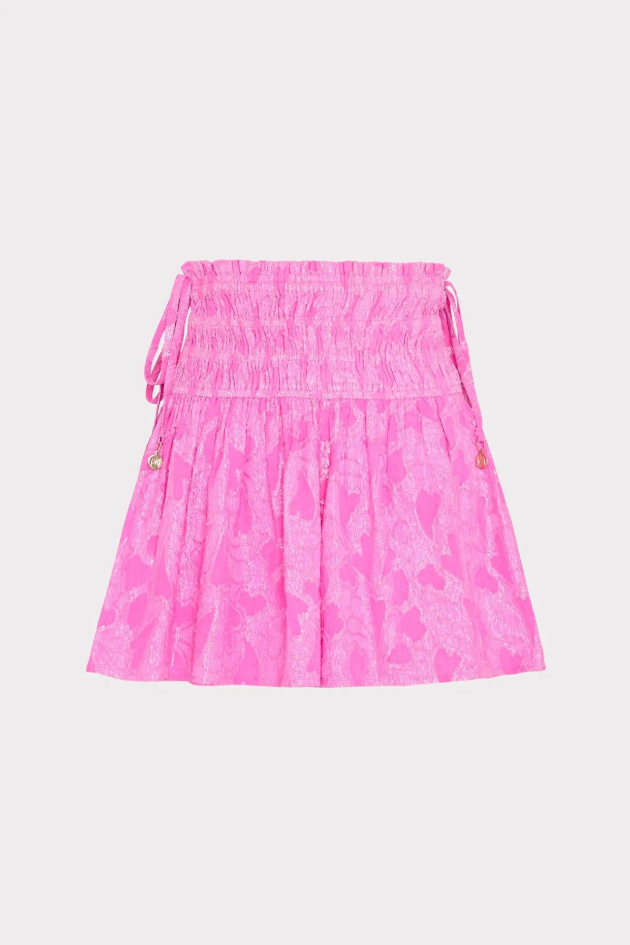 Made To Wear As A Swimsuit Cover-Up, The Wendy Short Is Rendered From A Pink Lurex, Jacquard Fabric With A Comfortable Cinched Elastic Waist, And Is Finished With A Decorative Tie Detail. Wear It Over Your Favorite Milly Swimwear.
