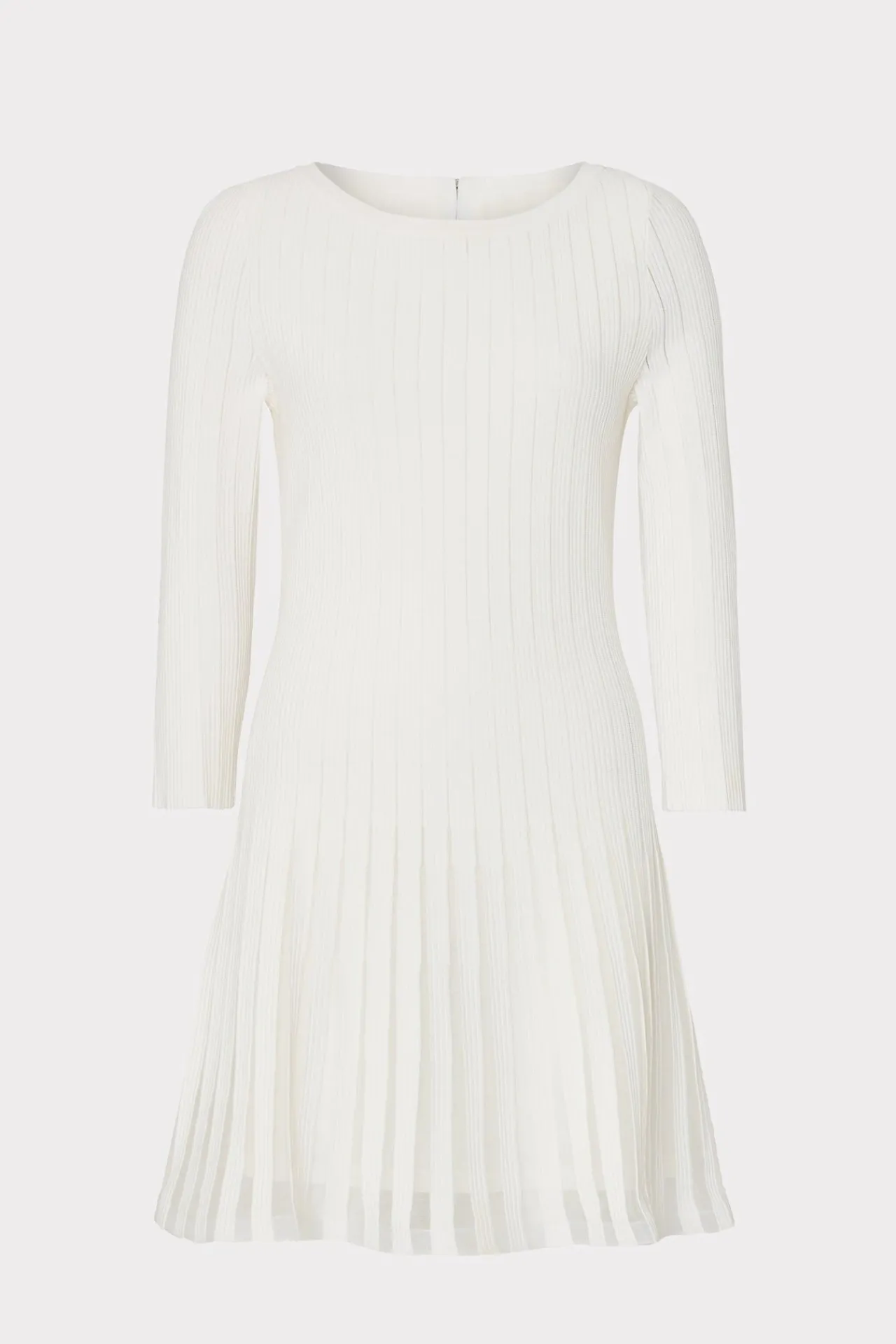 Our Latest Fit-And-Flare Dress Style Is Designed With Feminine, Bracelet Length Sleeves. Cut From A Ribbed Knit Fabric, It Features A Swingy, Godet Skirt With Sheer Insets. Style Yours With A Platform Heel This Season.