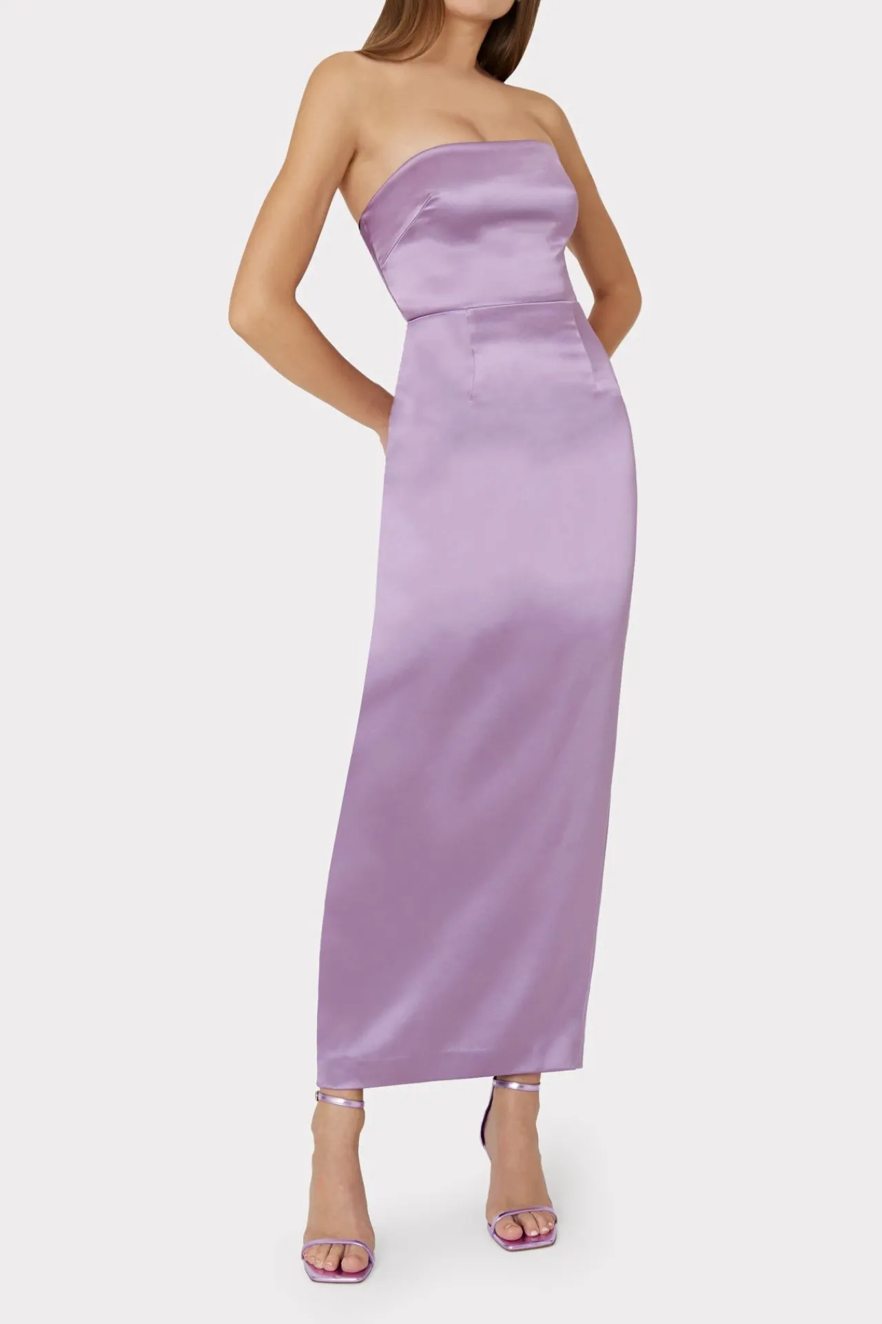 Rendered From Luxurious Hammered Satin, The Riva Gown Uses Minimalist Clean Lines To Craft An Elegant, Strapless Evening…
