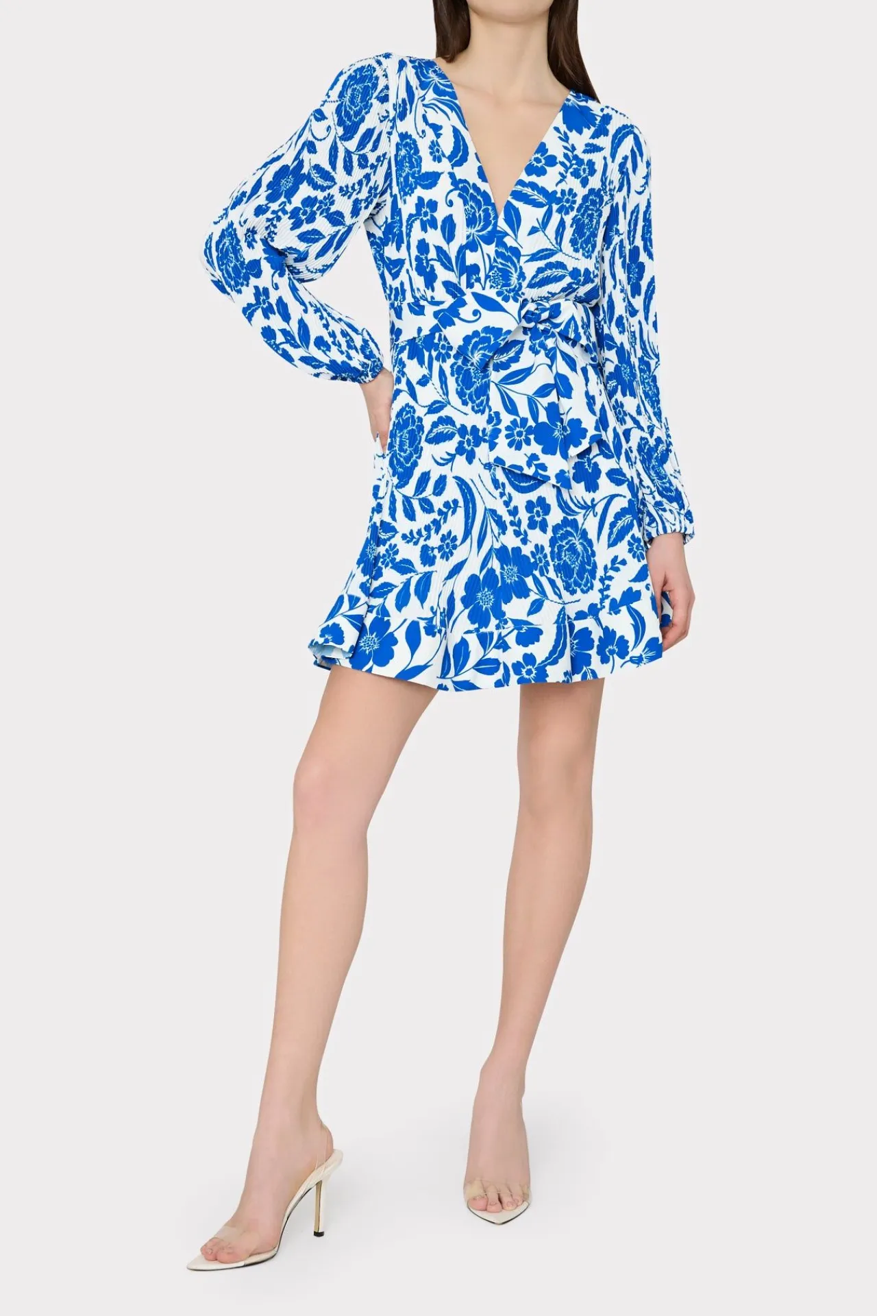 This Easy-To-Wear Pleated Short Dress Features A Slim Long Sleeve, A V-Neckline, A Milly Signature Pleated Skirt, And A Tie At The Waist For Added Shape. For The Spring Season, It Comes In Our Flowery New Print, Flowers Of Spain