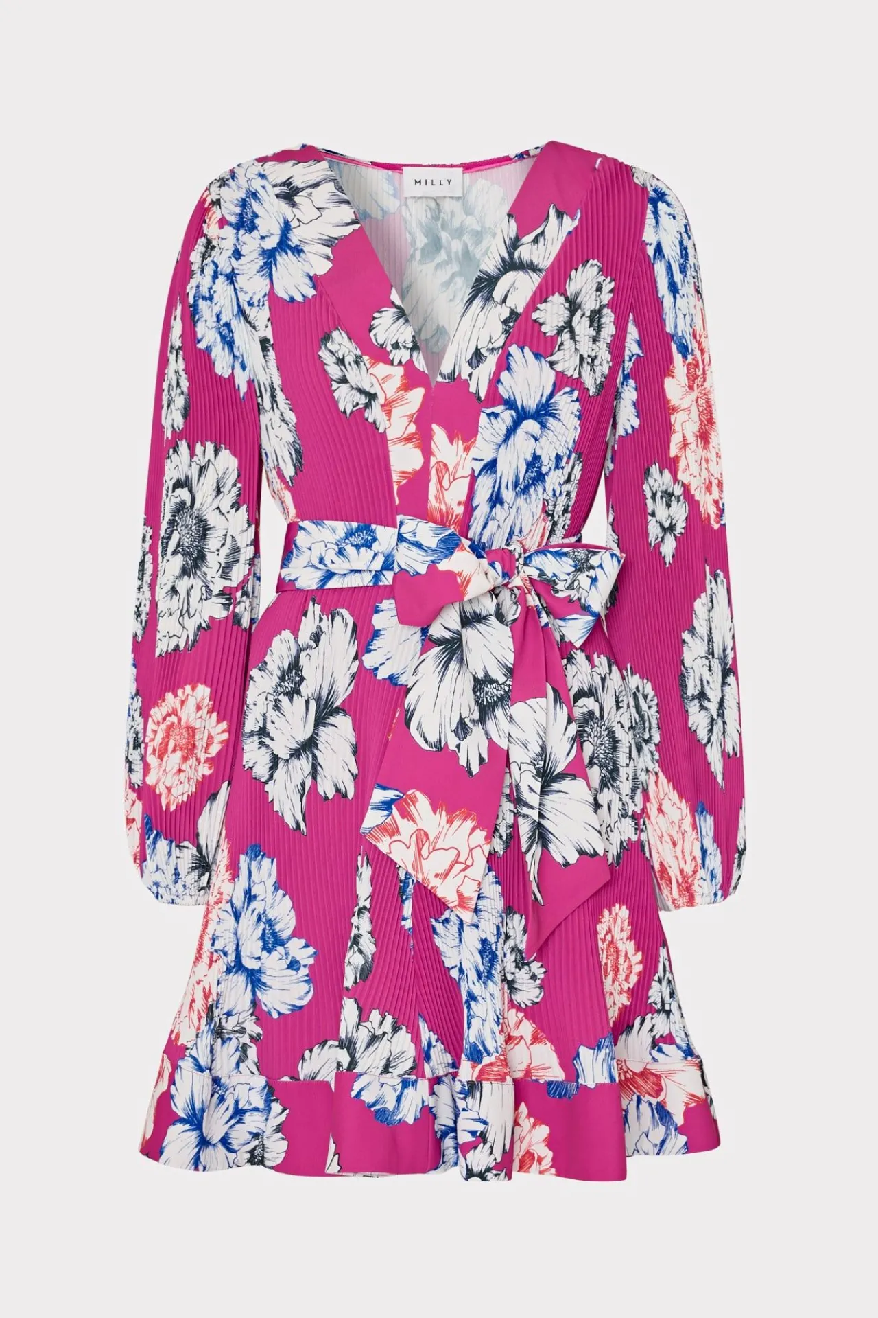 MILLY Mini Dresses-Liv Petals In Bloom Pleated Dress