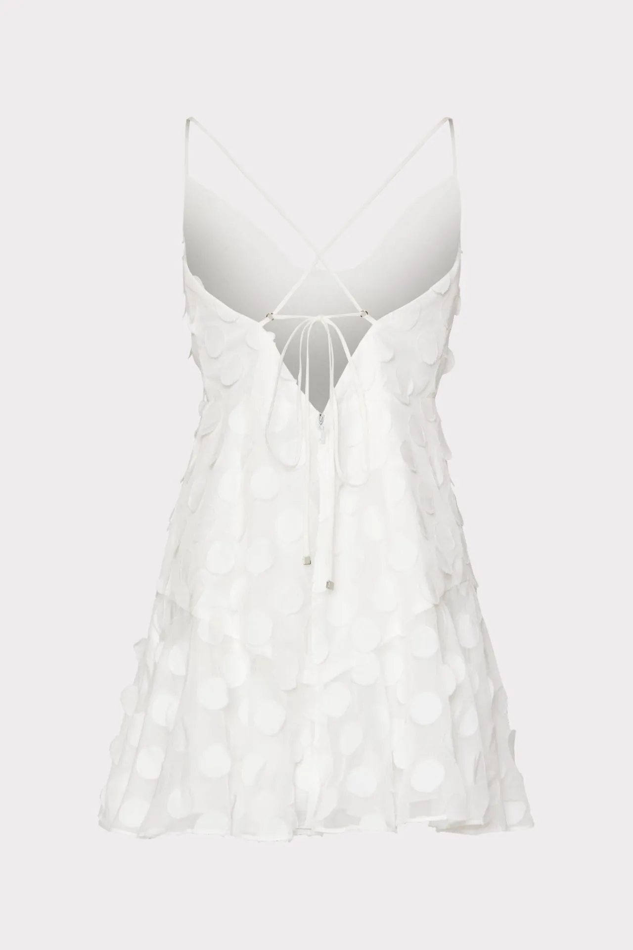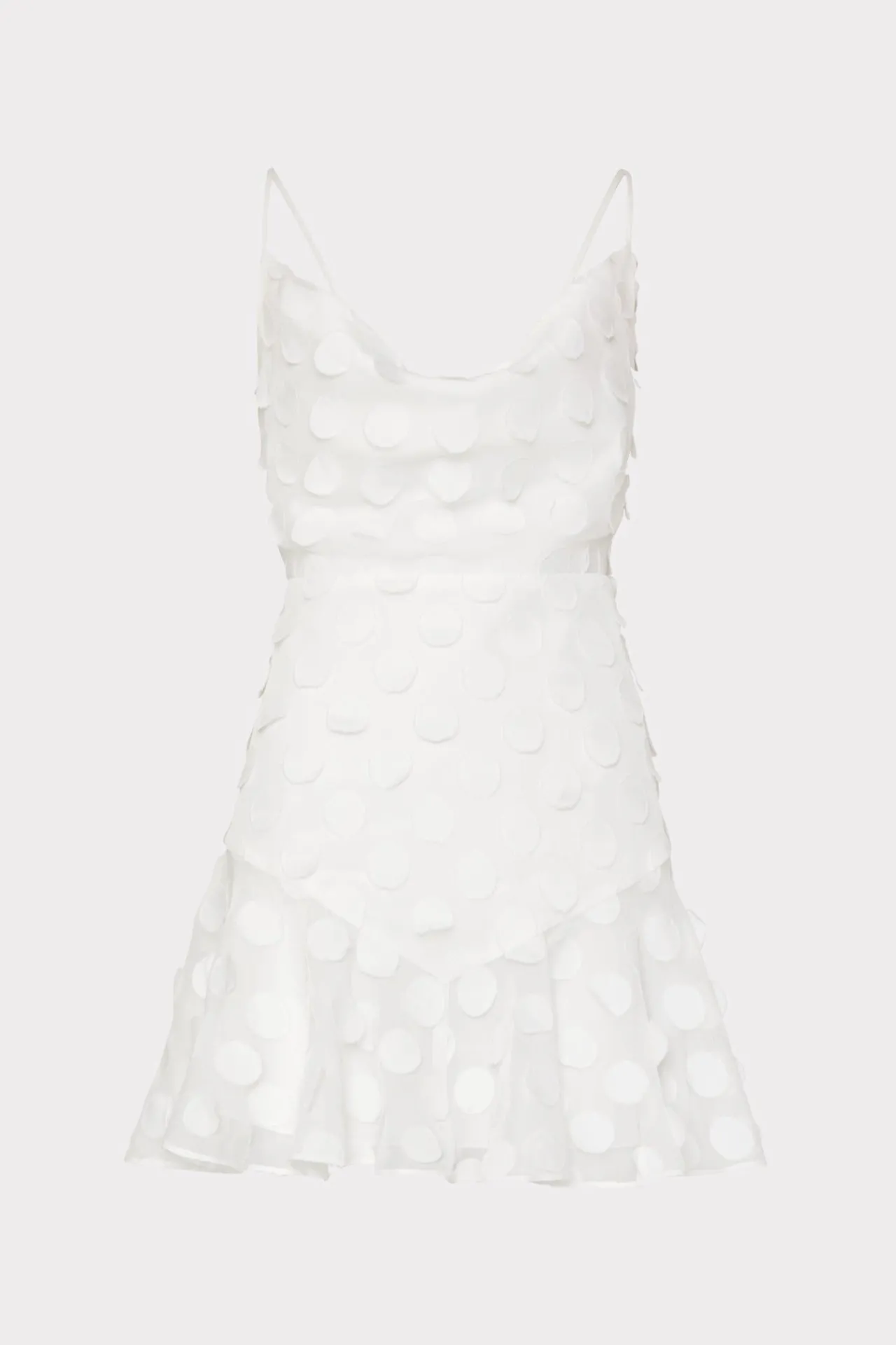 The Osian Mini Dress Has A Cowl Neckline, A Low Back That’S Finished With A Criss-Cross Detail, And Fitted Silhouette That Flares Out At The Hemline With An Elongated Ruffle For Extra Flounce. It’S Cut From An All-White 3D Dot Clip Fabric That Adds Both Dimension And Texture.