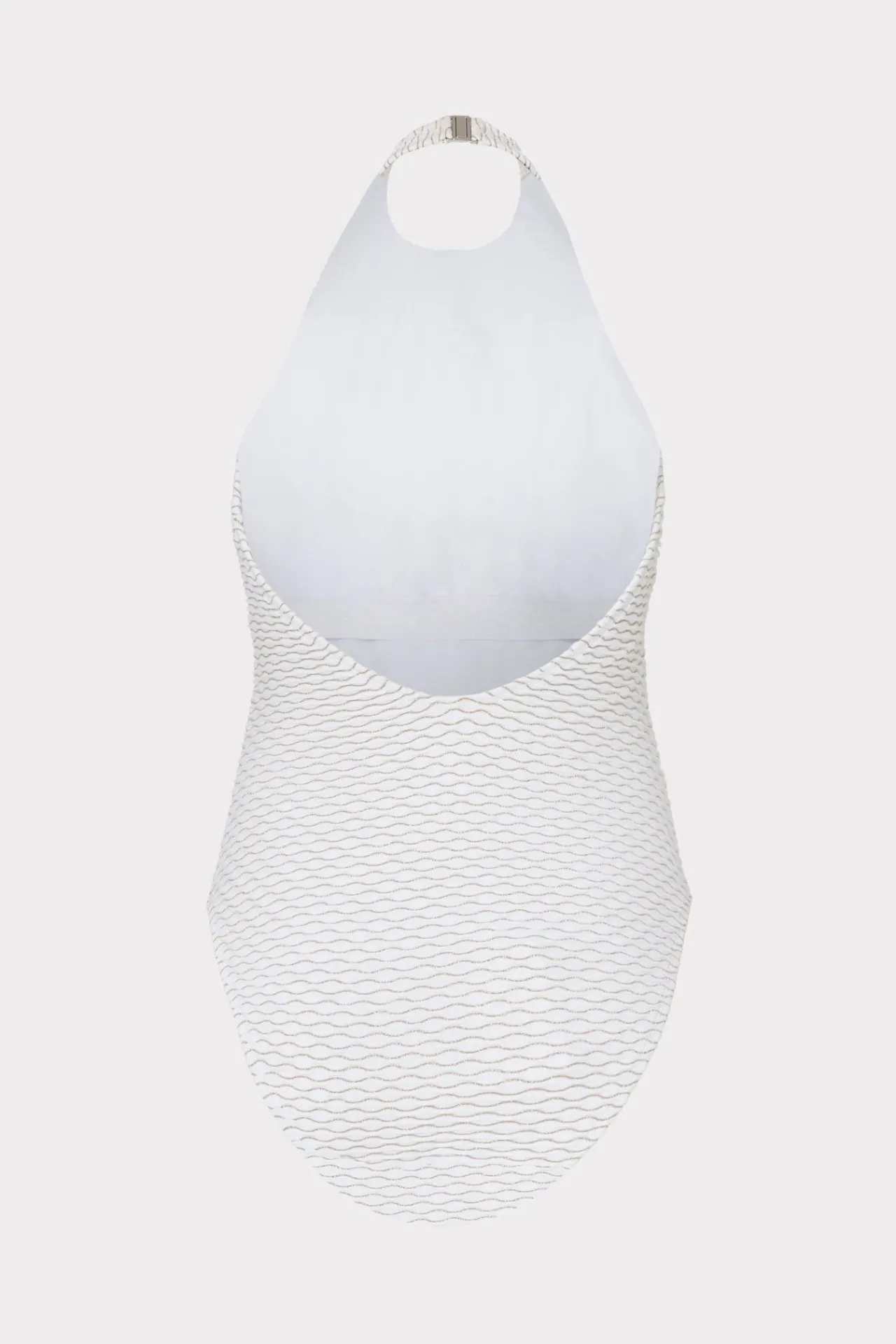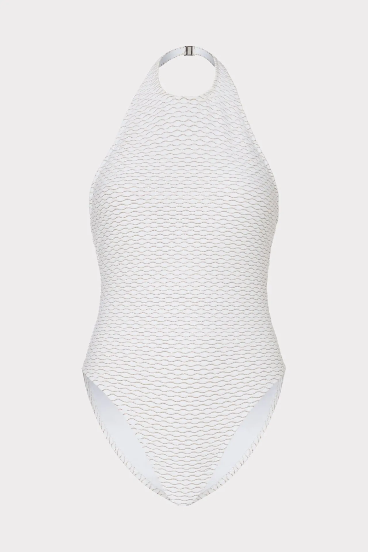 MILLY One Piece Swimsuits-Jackie Textured Waves Halter One Piece