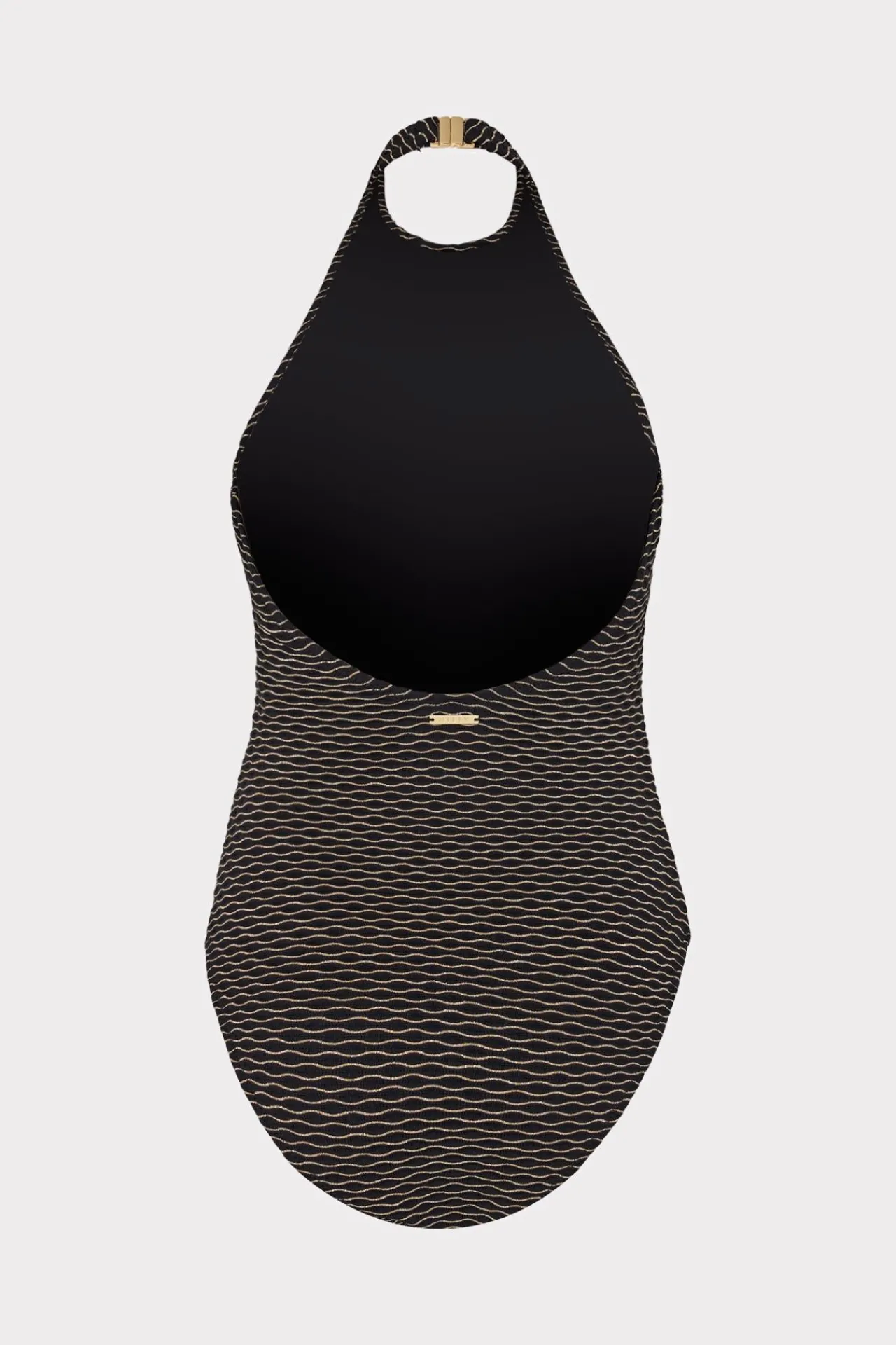 MILLY One Piece Swimsuits-Jackie Textured Waves Halter One Piece