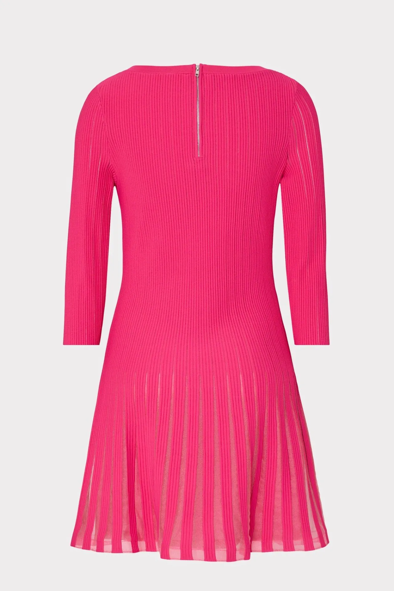 Our Latest Fit-And-Flare Dress Style Is Designed With Feminine, Bracelet Length Sleeves. Cut From A Ribbed Knit Fabric, It Features A Swingy, Godet Skirt With Sheer Insets. Style Yours With A Platform Heel This Season.