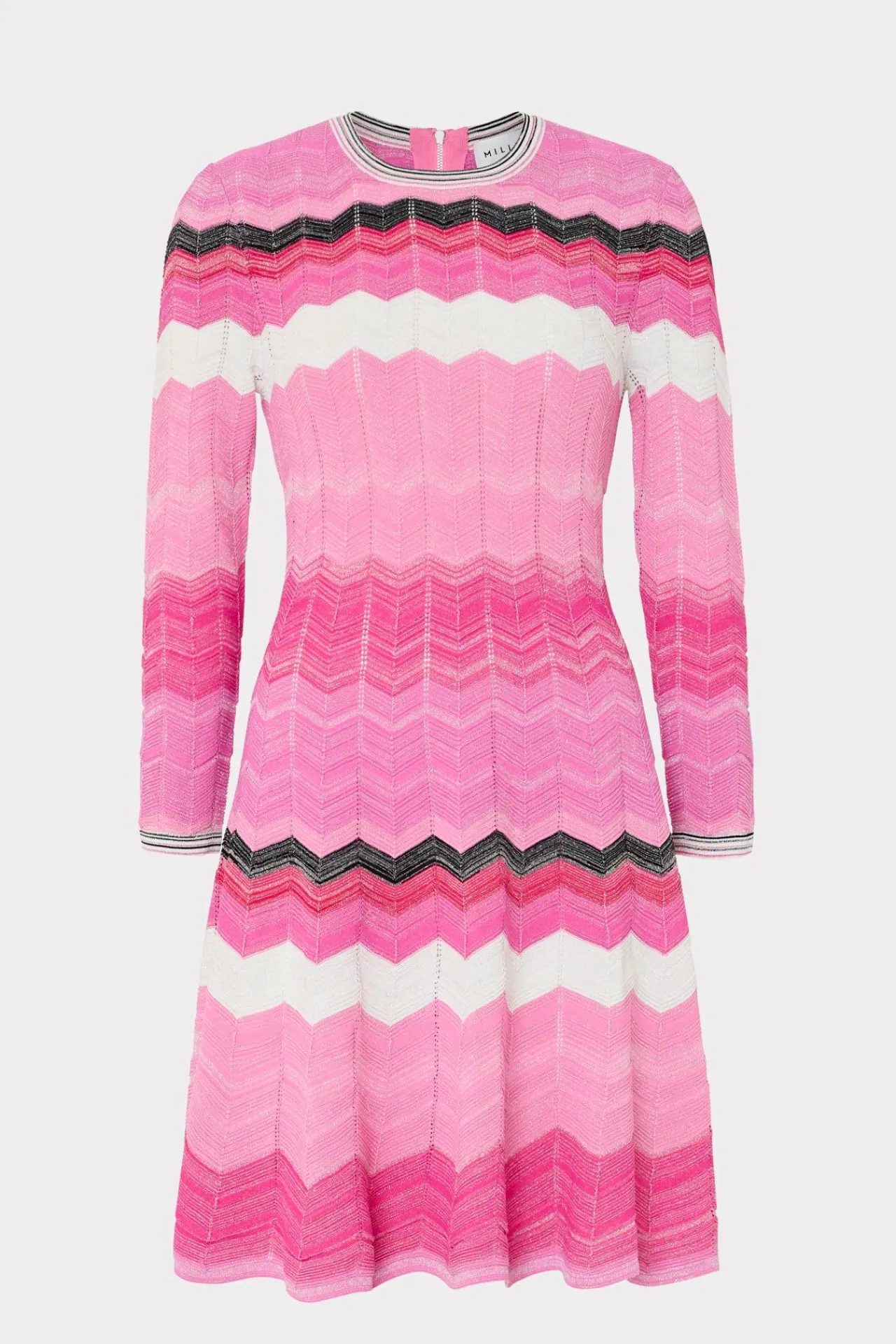 MILLY Pink Dresses-Zig Zag Long Sleeve Flare Dress