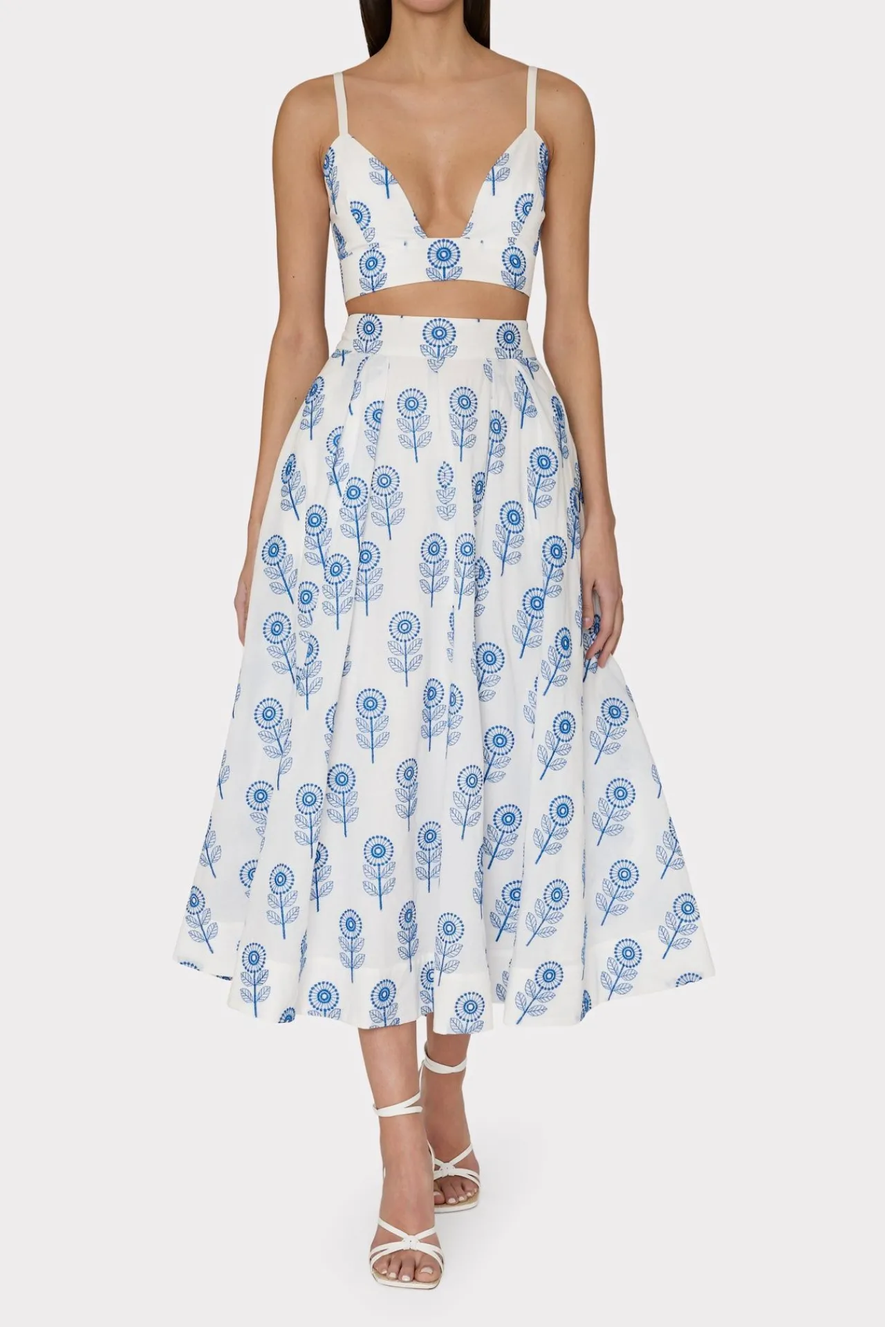 Cut From 100% Cotton, The Novi Poppy Maxi Skirt Is Defined By Intricate Blue Embroidery Atop Stark White. It’S A Full Of Volume Skirt That Hits Close To The Ankles. Style Yours With Its Coordinating Poppy Bralette Top Or Mix It Up With Any Variety Of White Tops That Fit The Occasion.