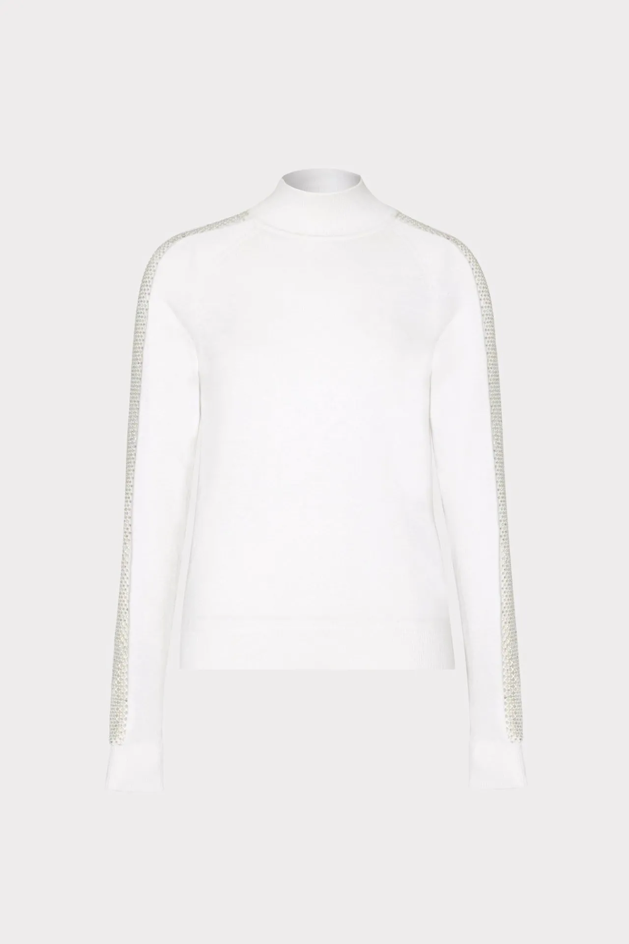 Perfect For Work Or Play, Our Classic Knit Turtleneck Is Accented With Mesh Racer Stripes That Are Adorned With Crystal Detail Along The Sleeves. Make It Casual With Milly Denim Or Wear It To Work With Any Solid Milly Bottoms.