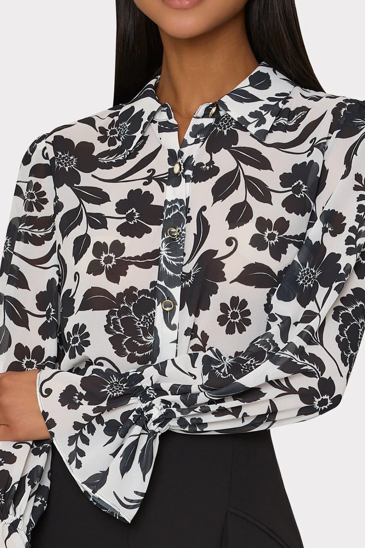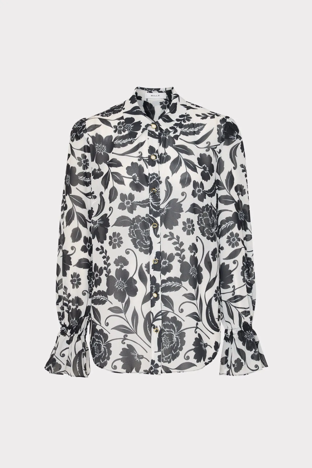 This Lightweight Button-Down Has An Understated Sharp-Edged Collar And Ruffles On The Sleeve For Added Charm. Pair It With Your Favorite Denim, Skirt, Or Wide-Leg Pants—The Options Are Endless. For Spring, It Comes In Our Petals In Bloom Print.